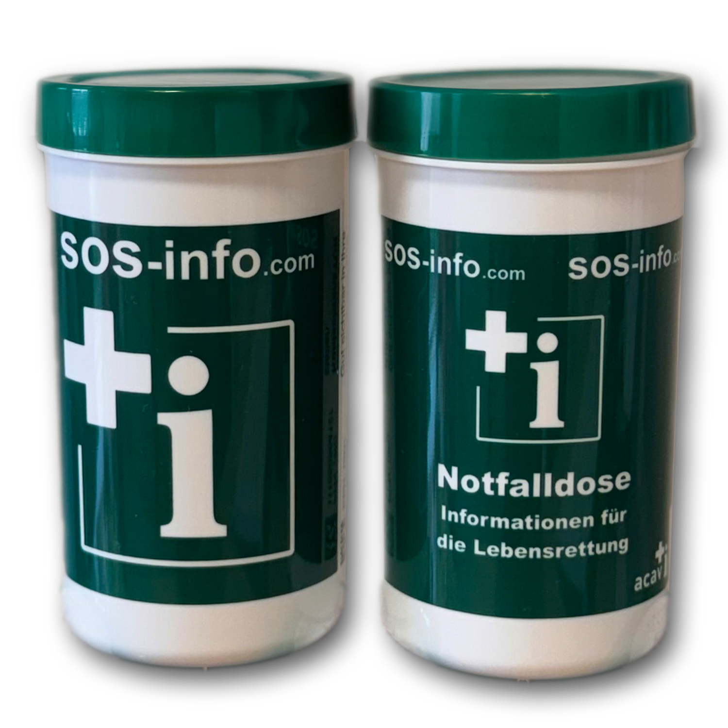 Die weiße Dose mit grünem Deckel und dem Aufkleber „Notfalldose – Informationen für die Lebensrettung“ hat es in sich: In ihr findet sich ein Infoblatt, in dem neben den Kontaktdaten der Bewohner auch wichtige Hinweise zu Krankheiten, Unverträglichkeiten und Vorerkrankungen aufgeführt werden können. Auch Fragen zur Medikamenteneinnahme, bisherigen operativen Eingriffen sowie zu festgestellten medizinischen Diagnosen werden abgefragt. Auch der behandelnde Hausarzt oder ein Pflegedienst ist anzugeben. Außerdem ist noch ein Hinweis zur Aufbewahrung von Medikamenten, Vorsorgevollmacht, Patientenverfügung, Organspendeausweis und dem Notfallordner enthalten. Die Kontaktperson, die im Notfall zu verständigen ist, ist ebenso aufgelistet, wie die Frage, ob eine Person auf meine tägliche Unterstützung/Pflege angewiesen ist. Zum Schluss findet sich auch noch ein Hinweis, ob ein Haustier im Haushalt gehalten wird und welche Hinweise beim Umgang mit dem Tier zu beachten sind.