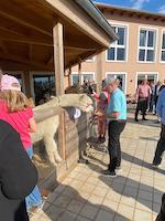 Es gehöre Mut und Durchhaltevermögen zu dem, was Markus und Daniela Enßner in bemerkenswert kurzer Zeit am südlichen Ende Dürrenmungenaus umgesetzt haben, leitete Bernhard Böckeler als Vorsitzender der ErLebenswelt Roth, einem großen Fördergeber des Projekts, sein Lob ein, dem noch viele folgen sollten. Denn nach dem Besuch waren sich alle einig: Mit dem Alpaka-Erlebnisbauernhof ist eine neue Attraktion für alle Altersgruppen entstanden. Auf dem großzügigen Gelände mit Café, Biergarten, Spielplatz und Hofladen ist aber noch viel mehr zu entdecken. Außerdem nicht zu unterschätzen: Es wurden 21 inklusive Arbeitsplätze geschaffen.